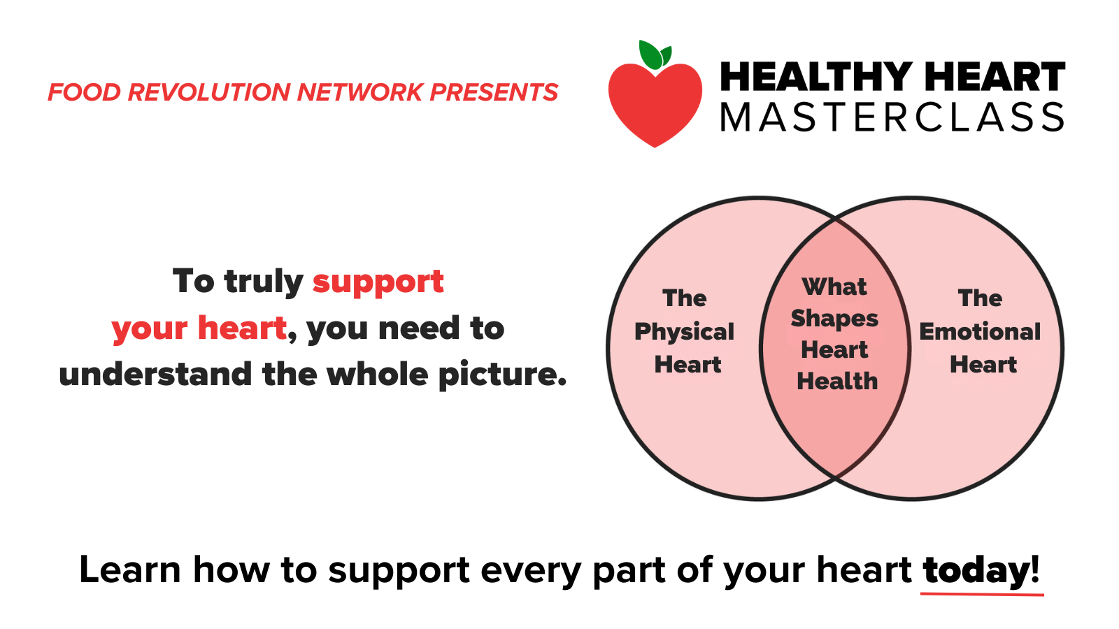 That’s why Food Revolution Network created the free Healthy Heart Masterclass with world-renowned holistic cardiologist Dr. Mimi Guarneri.