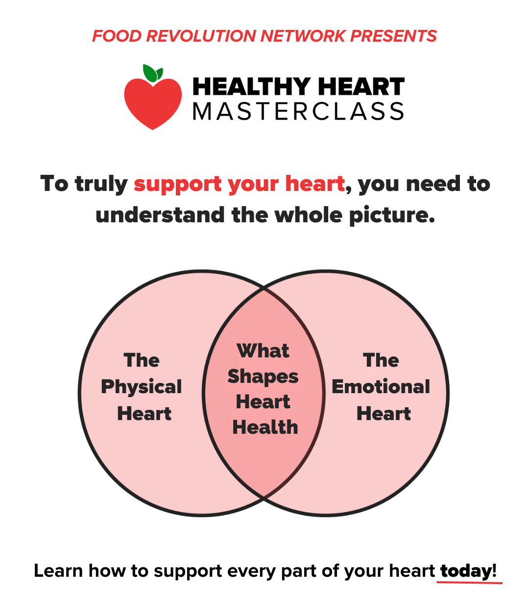 That’s exactly what you’ll learn about in the free Healthy Heart Masterclass with Dr. Mimi Guarneri and my friend Ocean Robbins from Food Revolution Network.