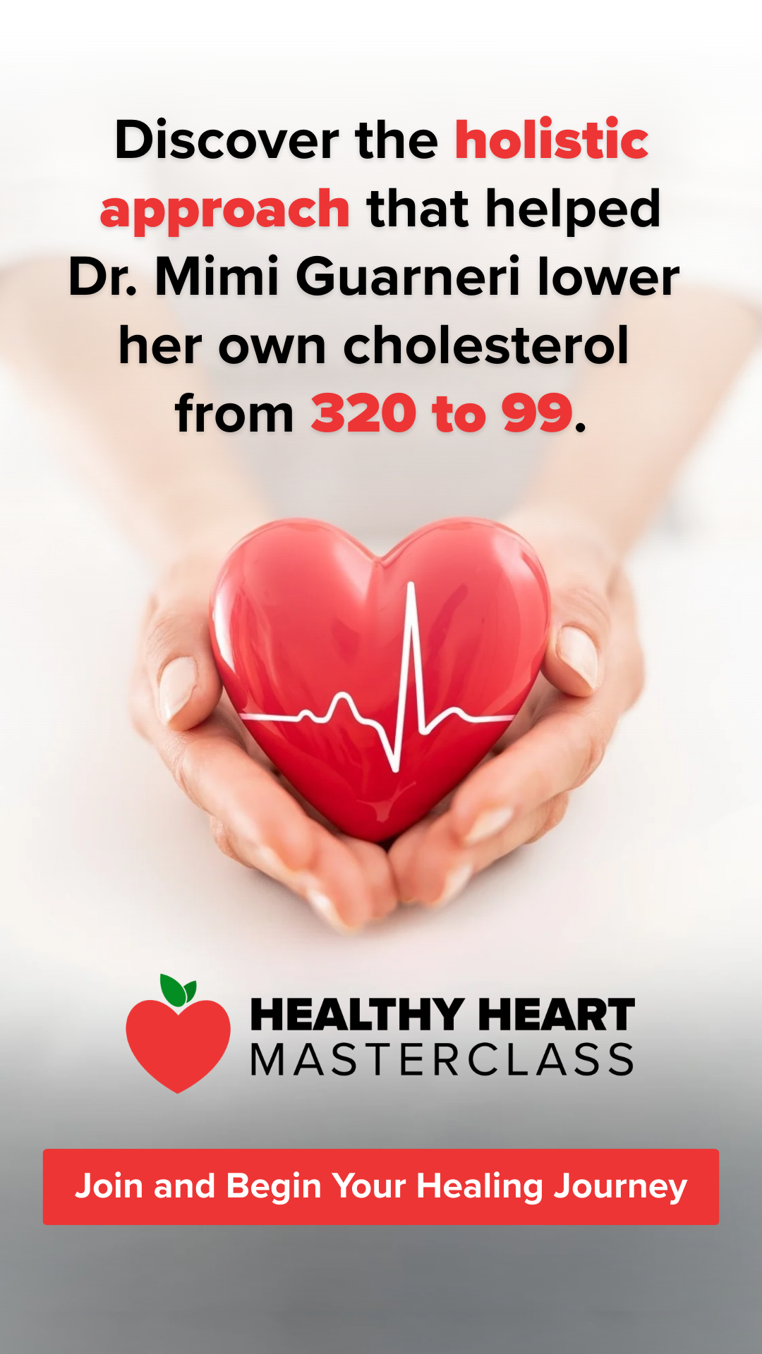 In fact, Dr. Mimi lowered her own cholesterol from 320 to 99 using the same holistic approach she now teaches in her free Healthy Heart Masterclass.