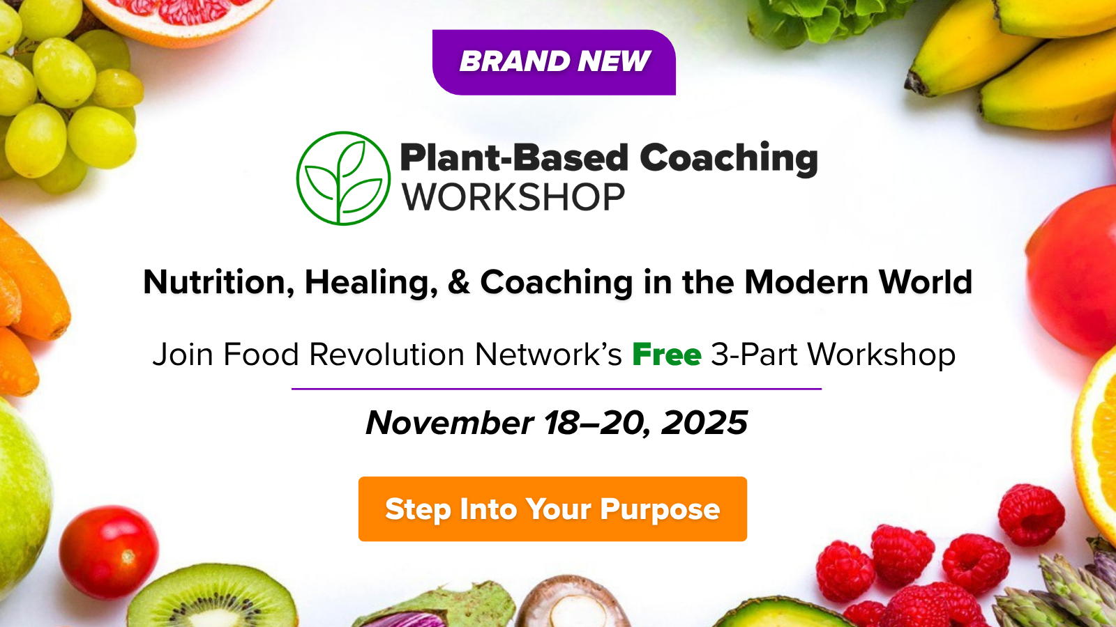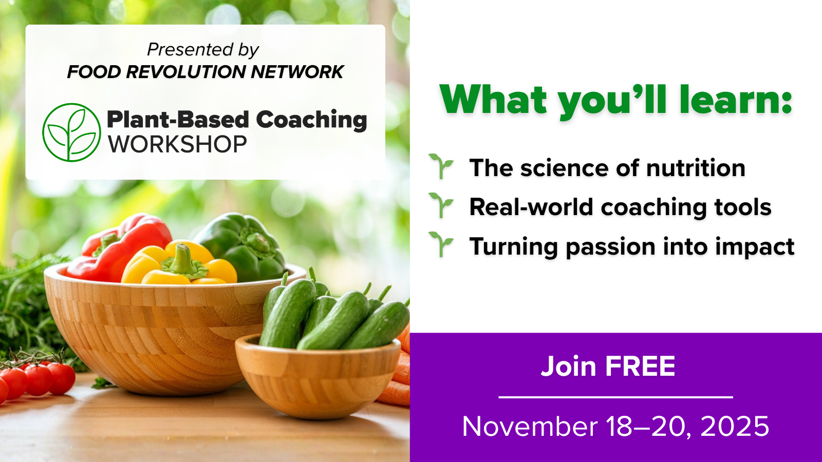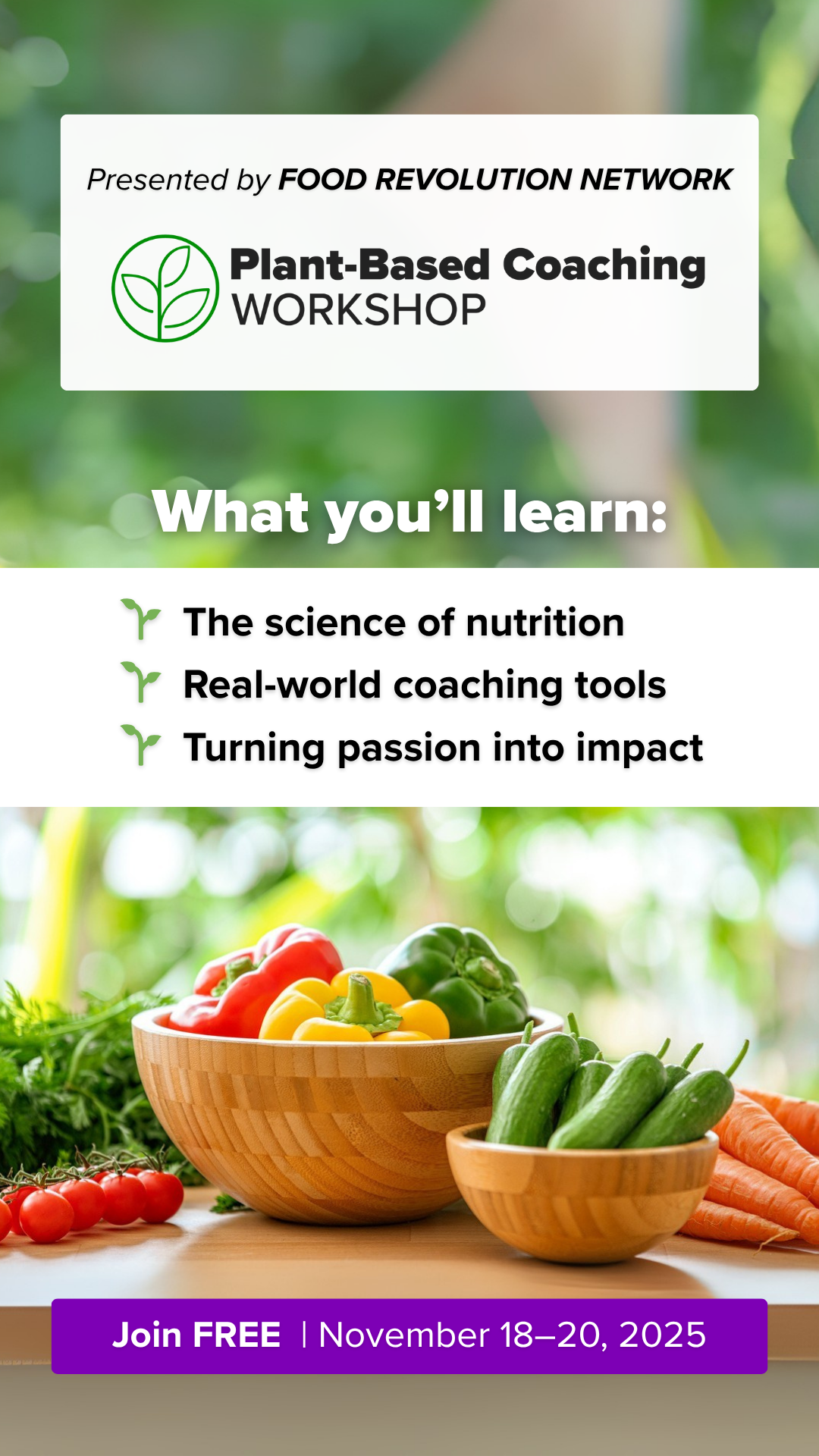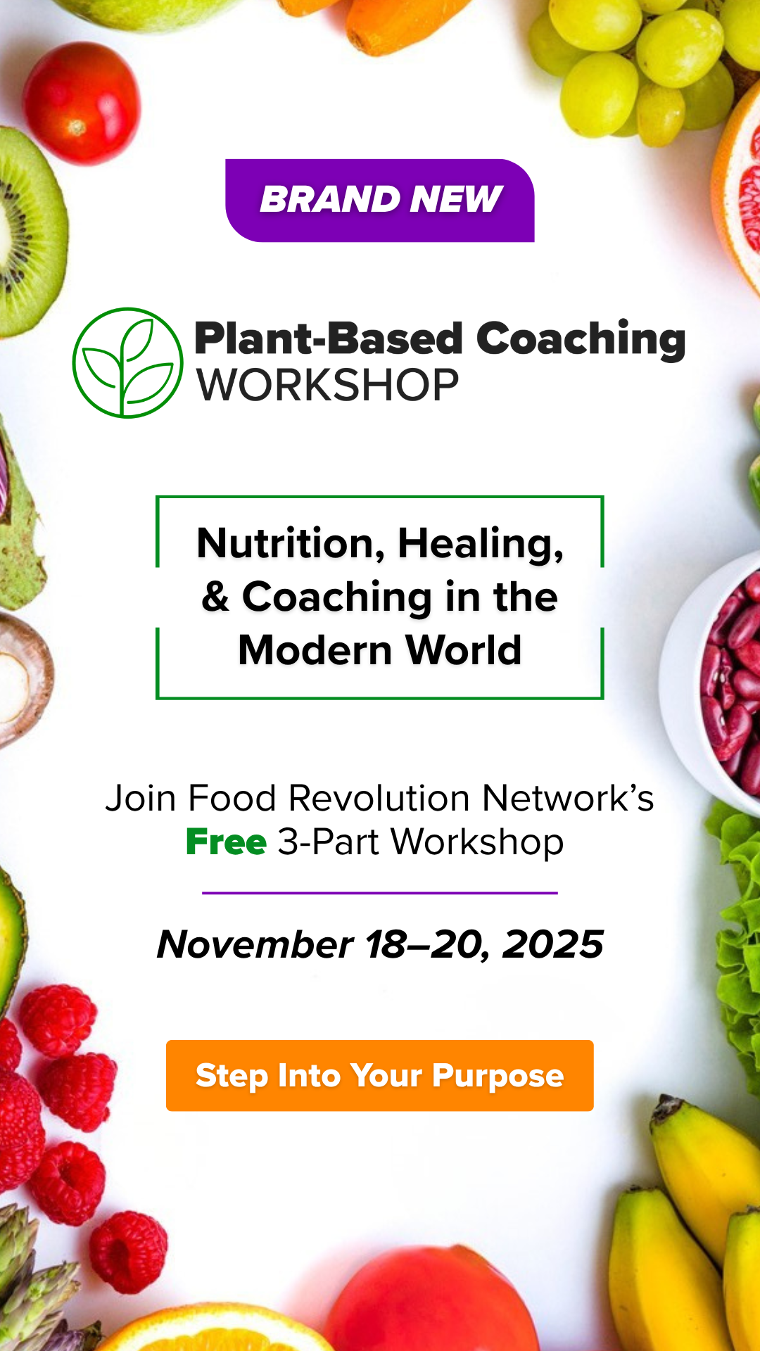 • Food Revolution Network just announced a BRAND-NEW Plant-Based Coaching Workshop! If you attended the first one in August, you already know how powerful and inspiring it was… And you’ll want to be here for round two. If you missed it, this is your chance to go deeper with your learning and discover what you can do as a plant-based coach. Get ready for a fresh lineup of speakers, new content, and the same high-impact approach that’s changing lives!