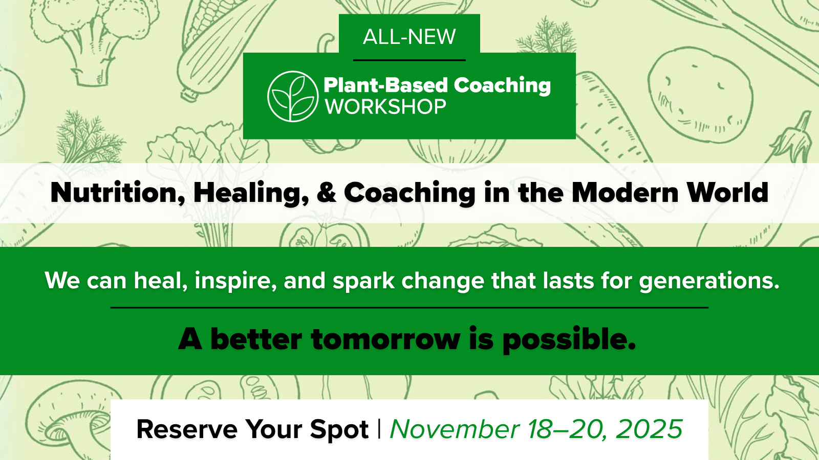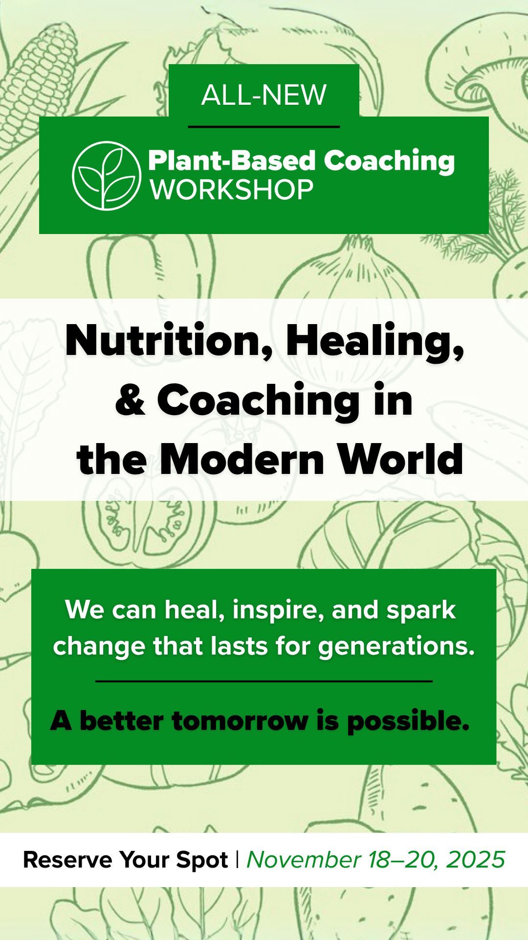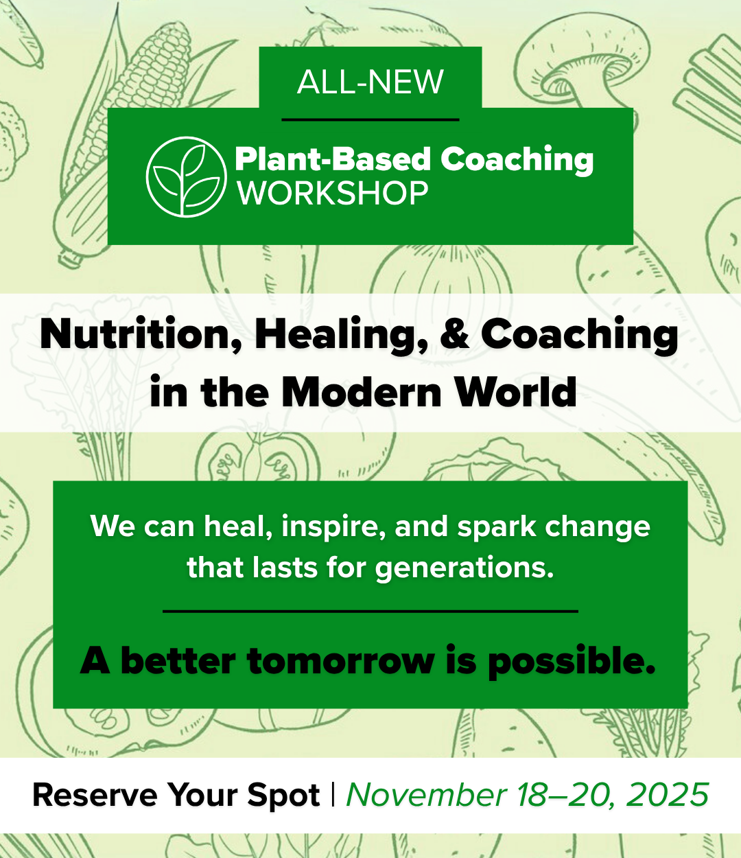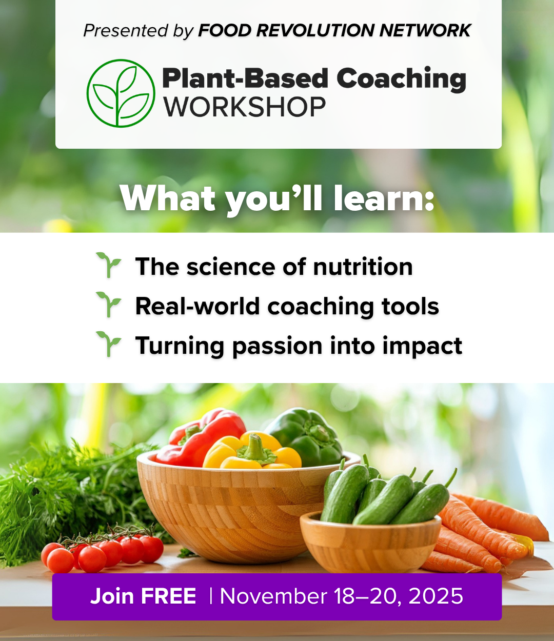 • Food Revolution Network just announced a BRAND-NEW Plant-Based Coaching Workshop! If you attended the first one in August, you already know how powerful and inspiring it was… And you’ll want to be here for round two. If you missed it, this is your chance to go deeper with your learning and discover what you can do as a plant-based coach. Get ready for a fresh lineup of speakers, new content, and the same high-impact approach that’s changing lives!