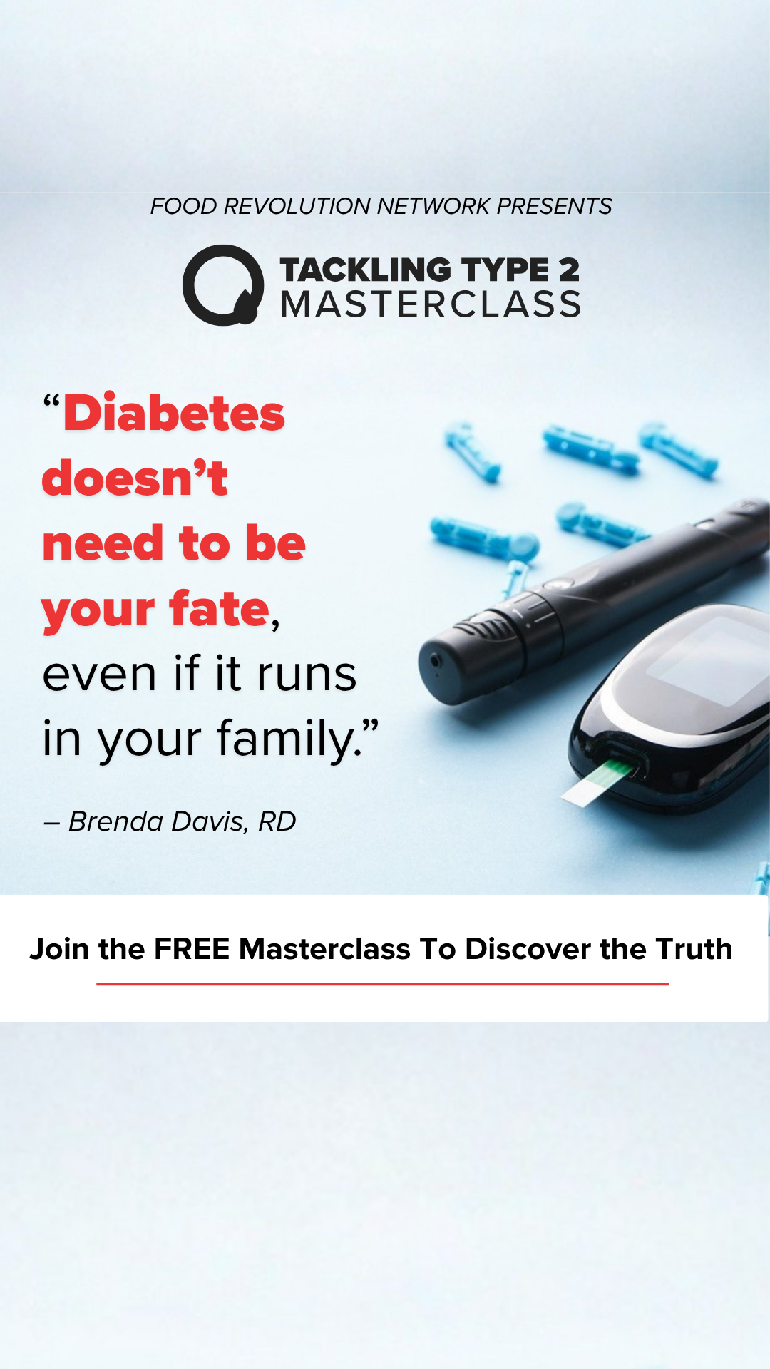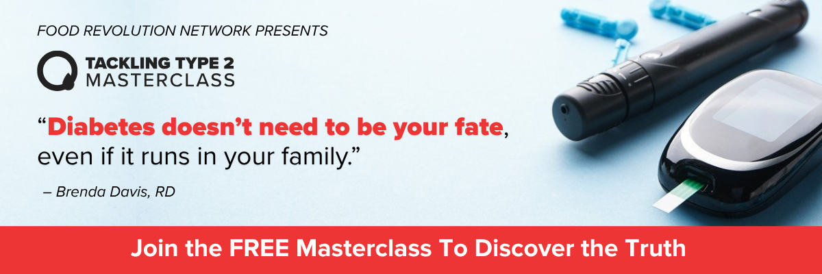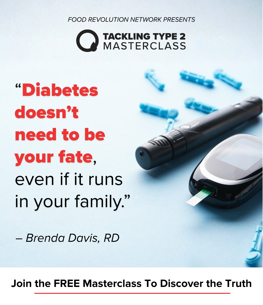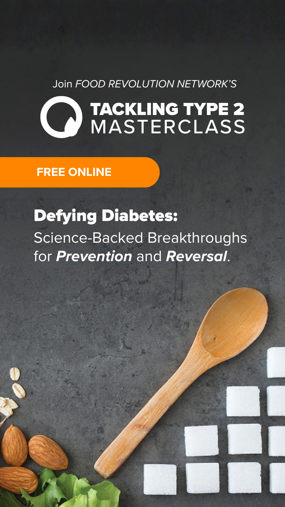 If you or someone you love is concerned about type 2 or pre-diabetes, Food Revolution Network’s free Tackling Type 2 Masterclass is a must-watch.